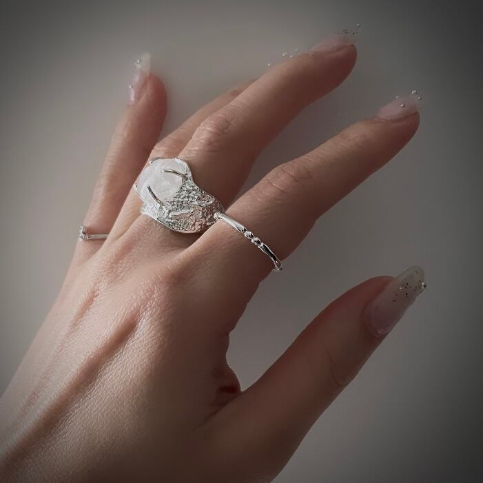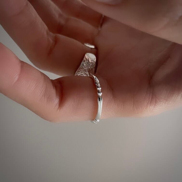素材:silver925 刻印あり サイズ:オープンリングの為 約11号(内径16.4mm)〜約17号(内径18.4mm)まで 調整可能ですが、強く力をかけすぎると 破損の原因となりますのでご注意下さい。 ご購入頂く前に必ずinformationをお読み下さい。