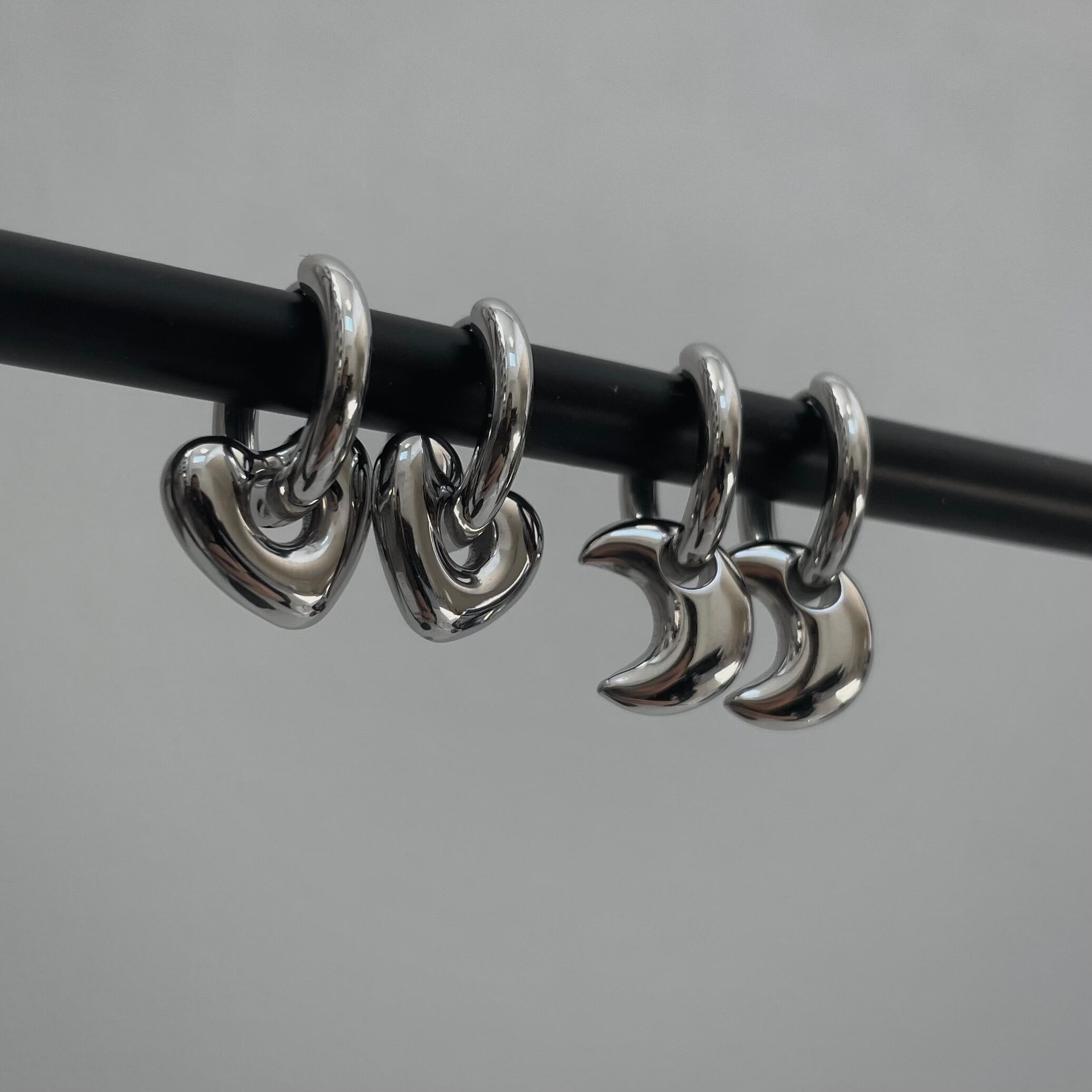 素材:stainless steel サイズ:着用画像をご参照ください。 片耳:ハート約5.2g ムーン約4.2g ご購入いただく前に必ずinformationをお読みください。